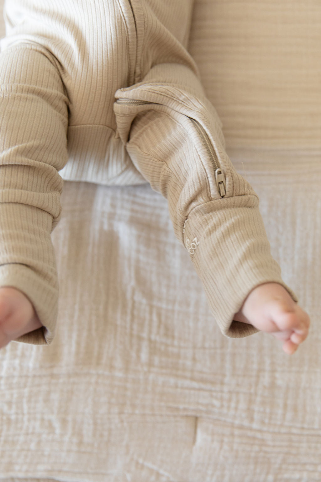 RIBBED SOLID TAN | ZIPPER ONE PIECE