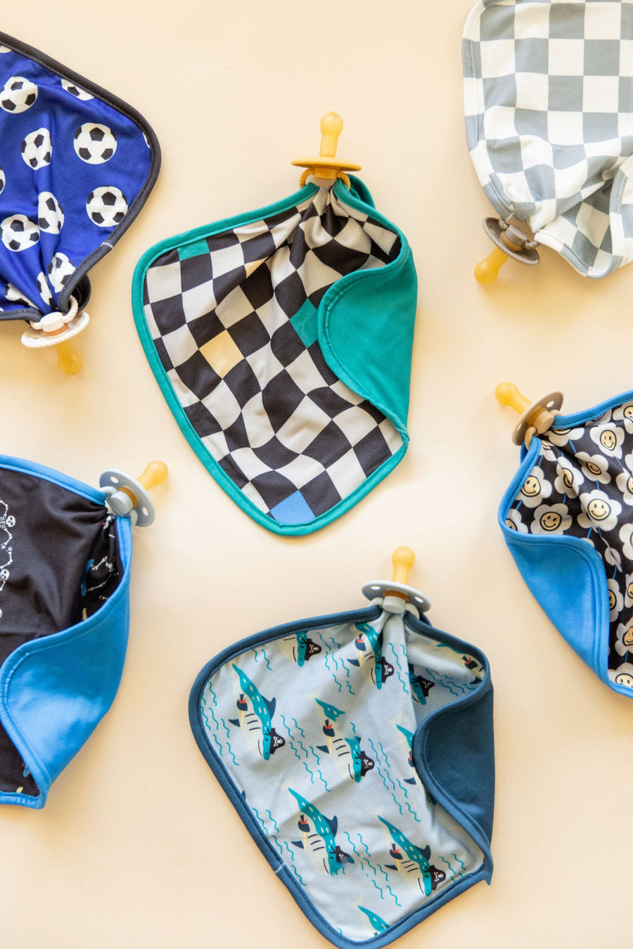 Our Cozys lovies are double sided and can be attached to any pacifier, toy or teether.