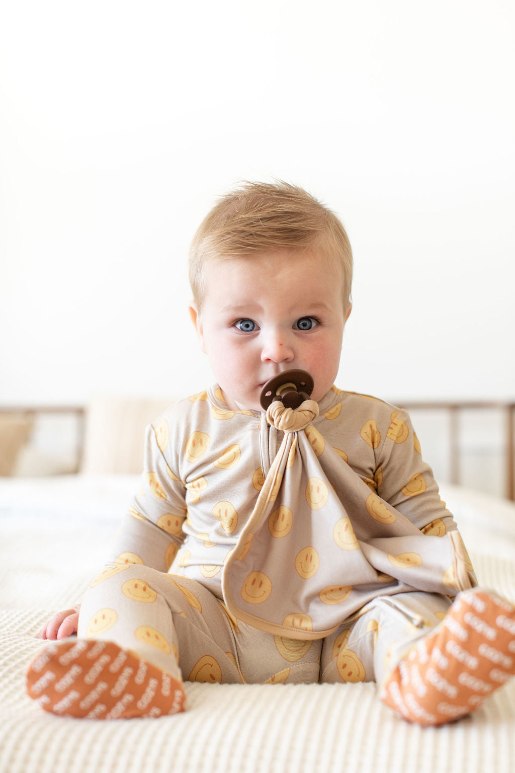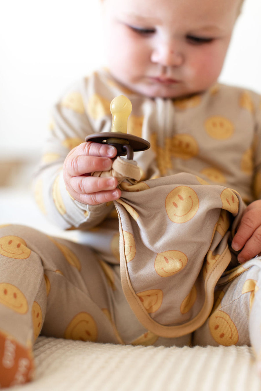 Our Cozys lovies are double sided and can be attached to any pacifier, toy or teether.