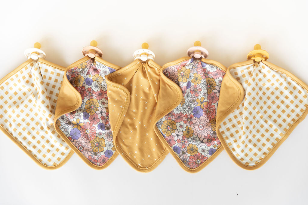 Our Cozys lovies are double sided and can be attached to any pacifier, toy or teether.