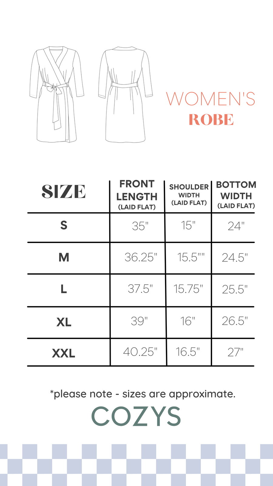 Our COZYS women's robes are perfect for lounging around the house, getting ready, or even a growing baby bump! Wrap yourself in our buttery soft fabric you won't want to take off. Our stylish and feminine design is lightweight and breathable.