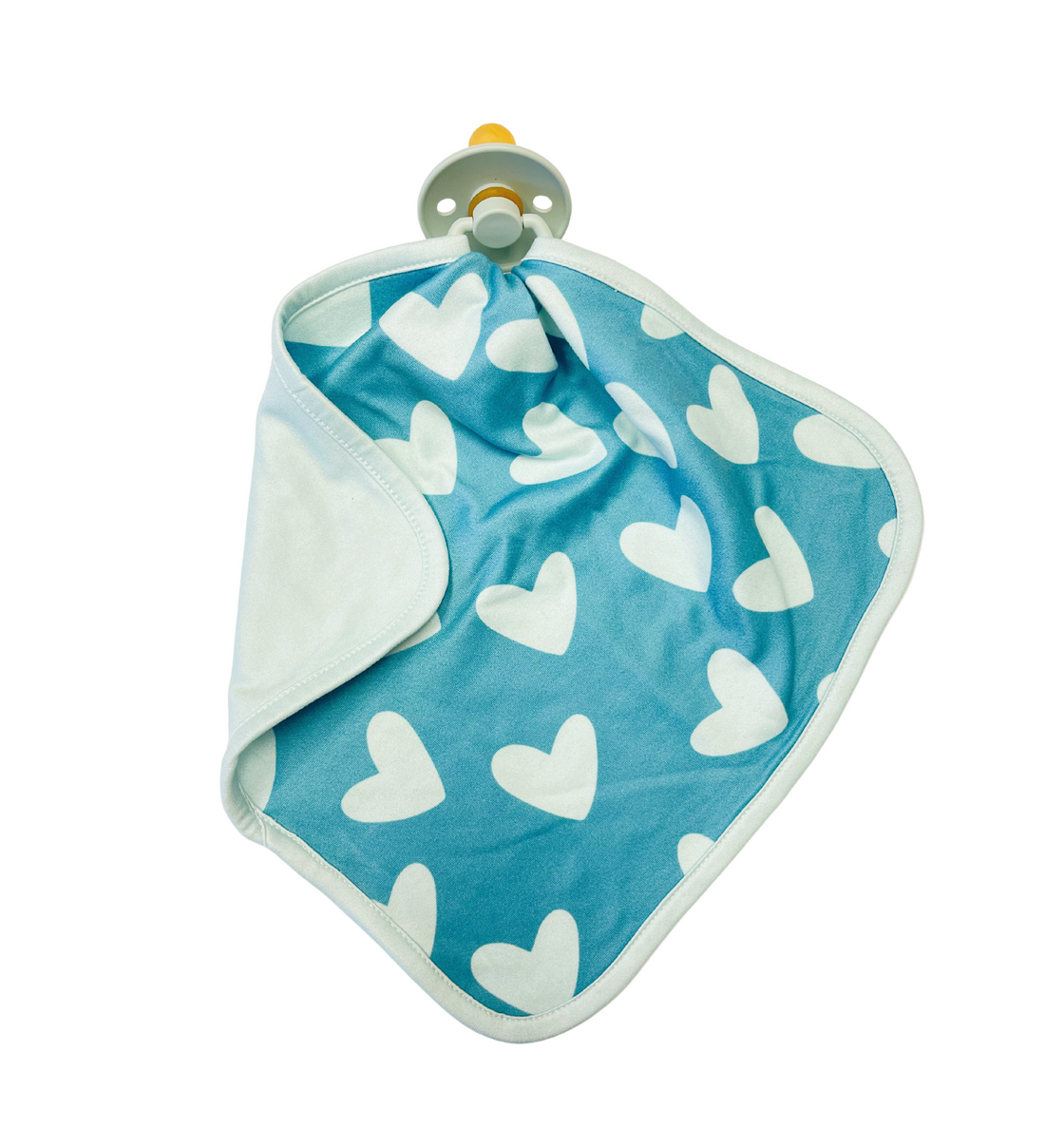 Our Cozys lovies are double sided and can be attached to any pacifier, toy or teether.