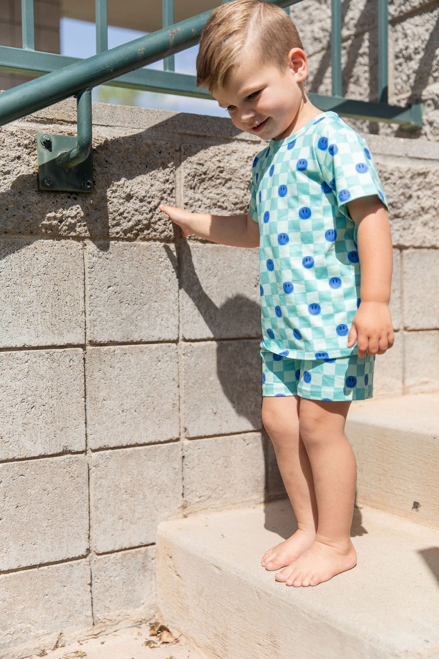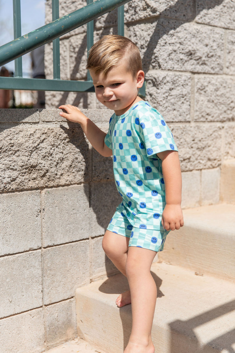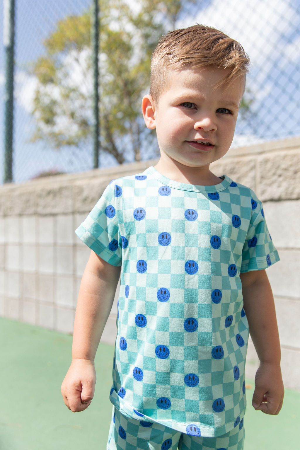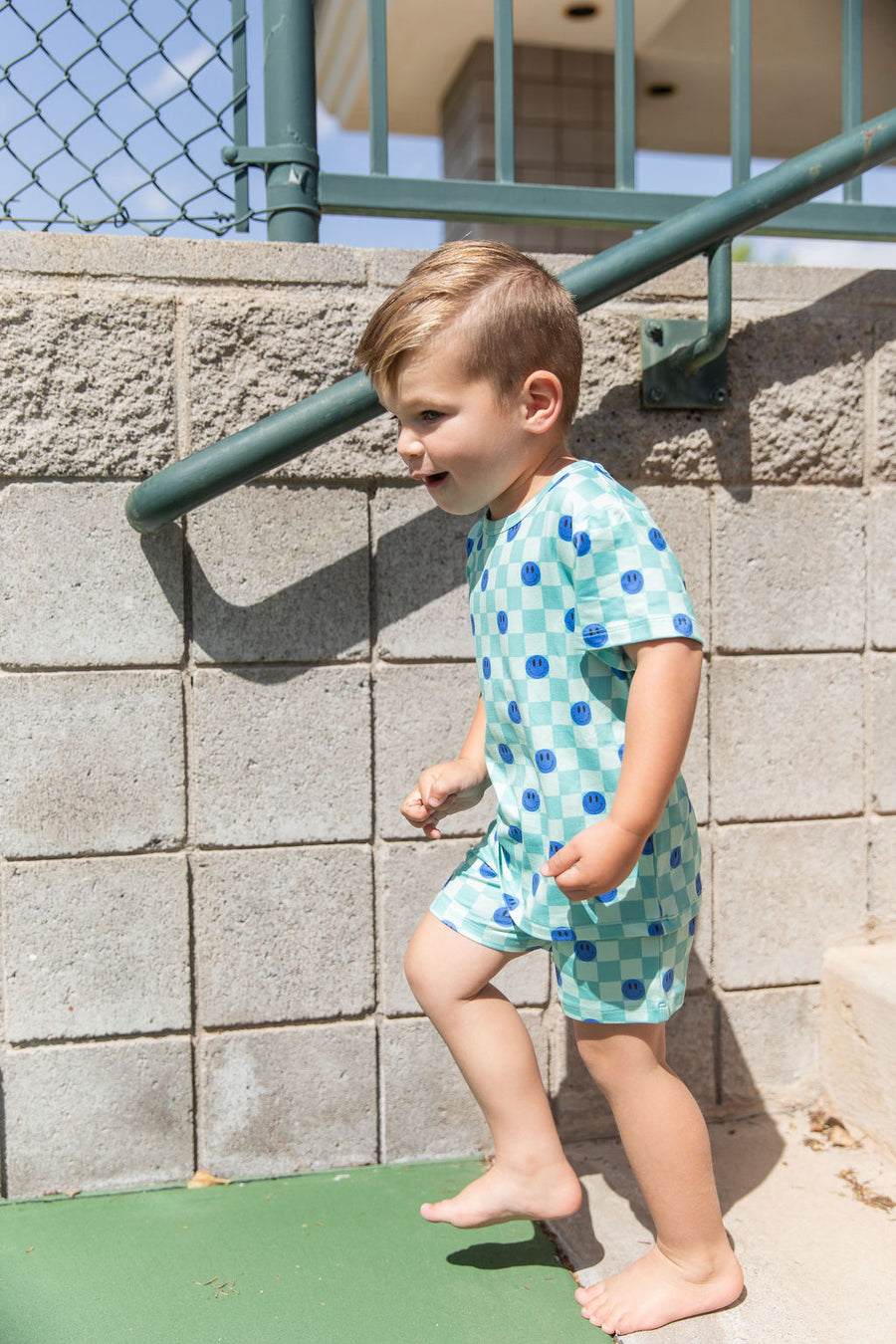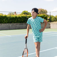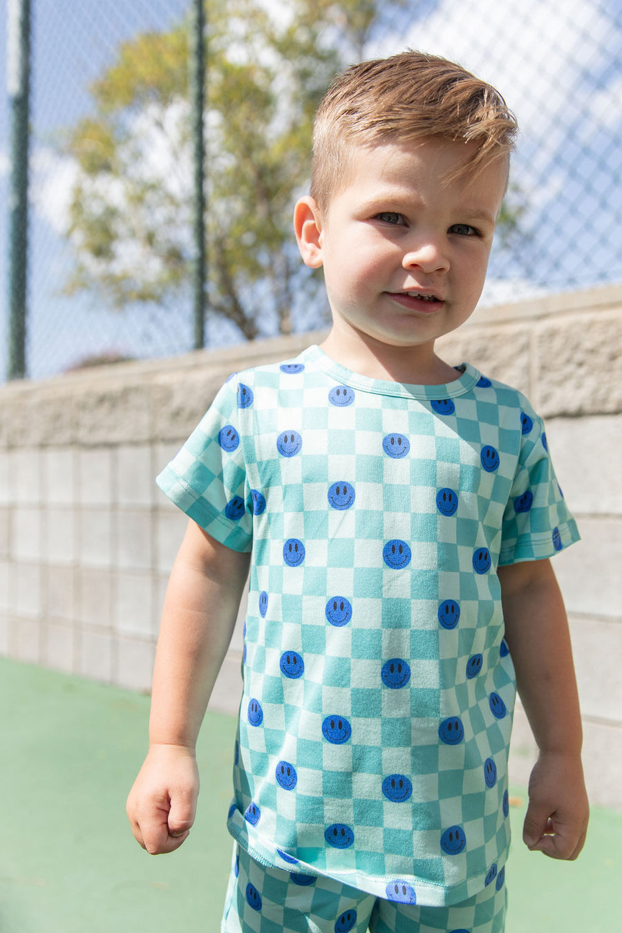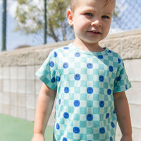 TEAL SMILEY CHECKER | SHORT SET
