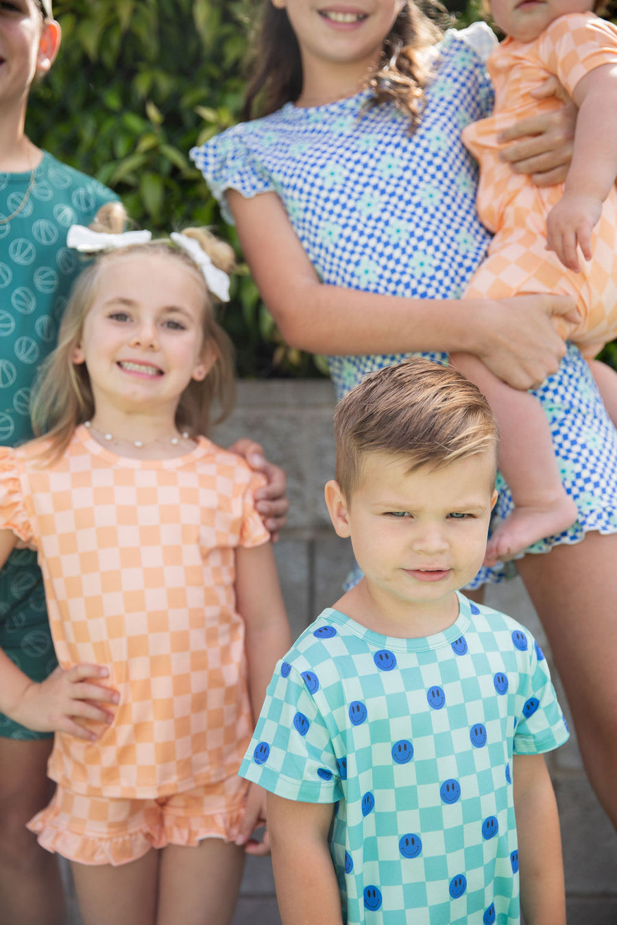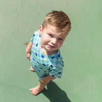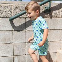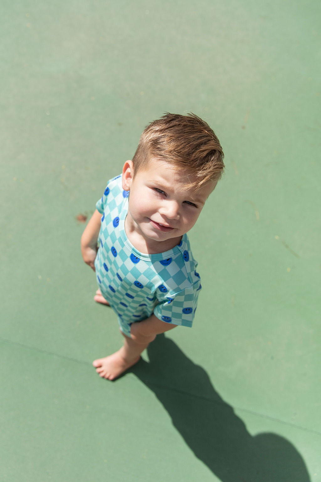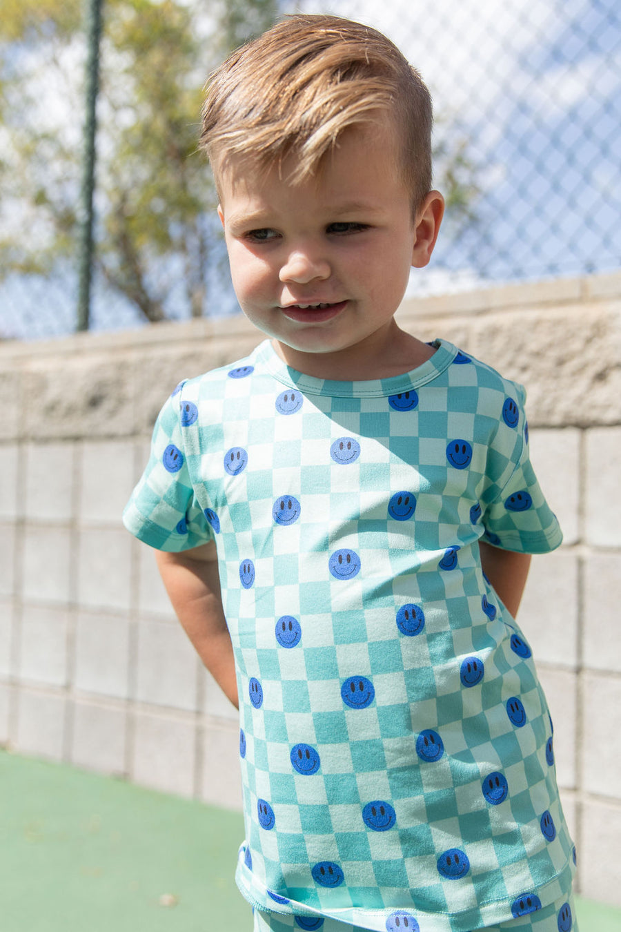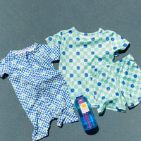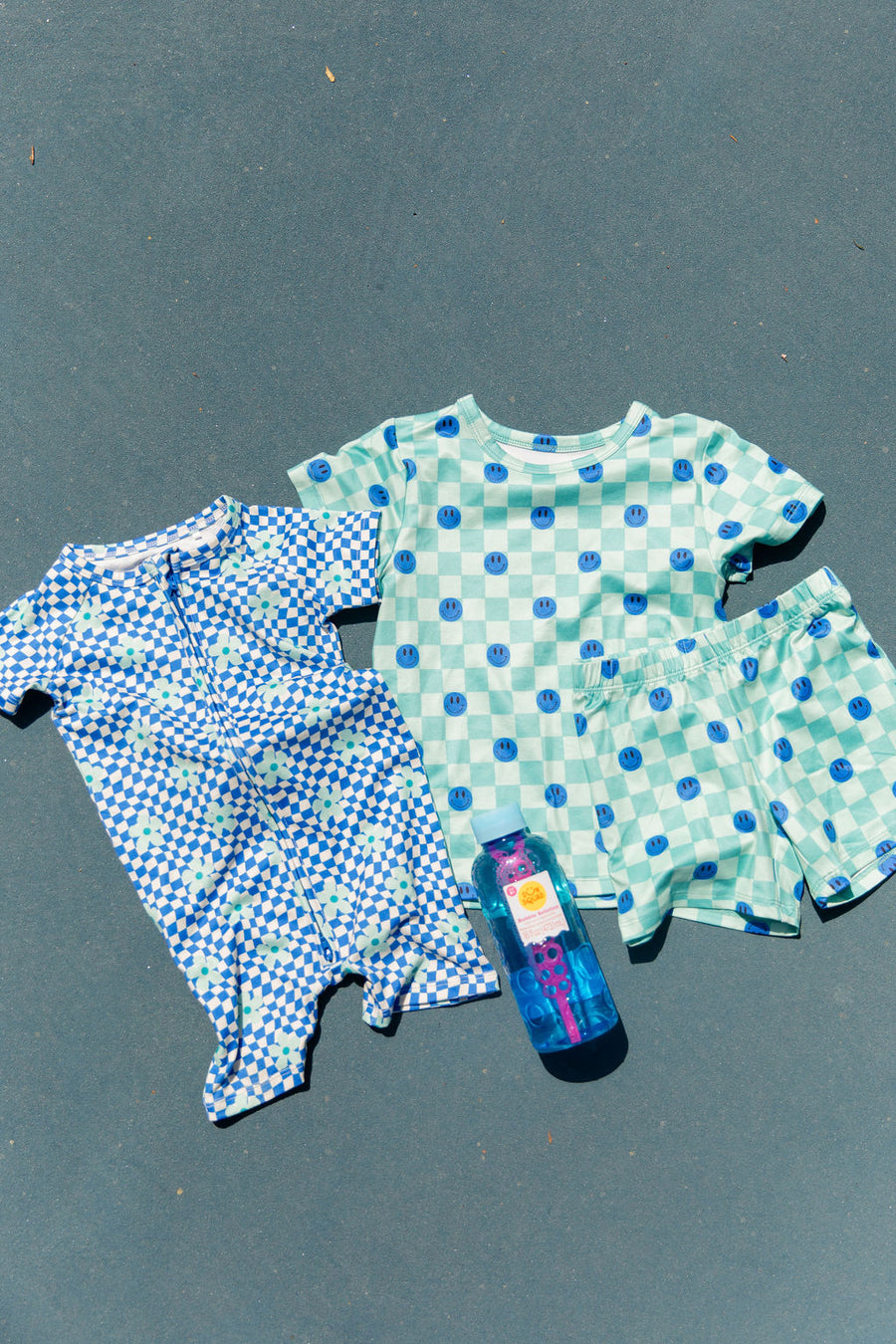 TEAL SMILEY CHECKER | SHORT SET