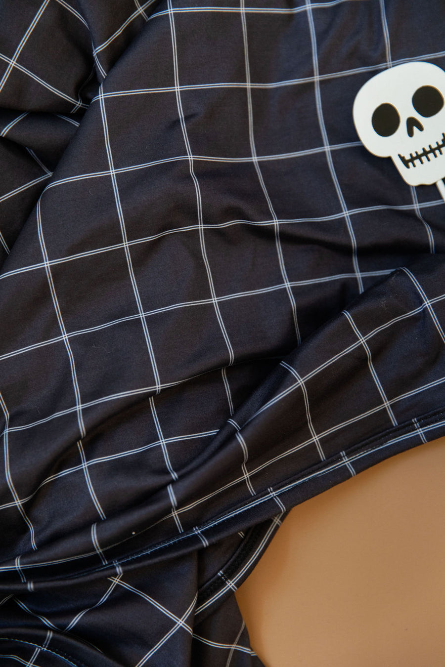 Black + White Grid/Plaid print blanket with a Black + White Grid/Plaid reverse.