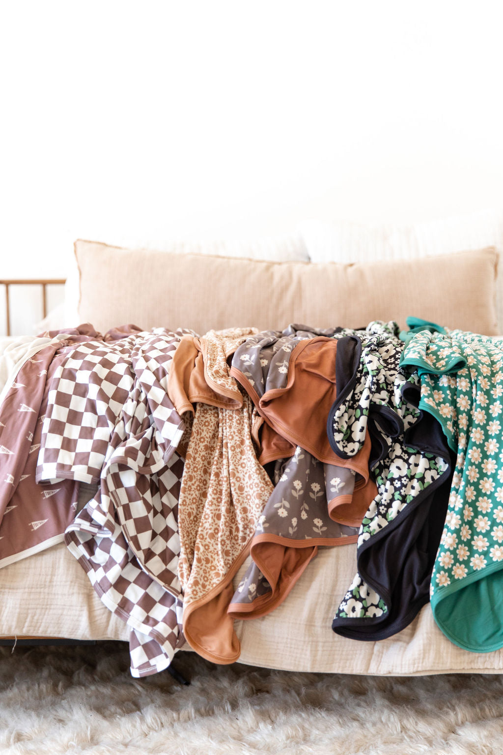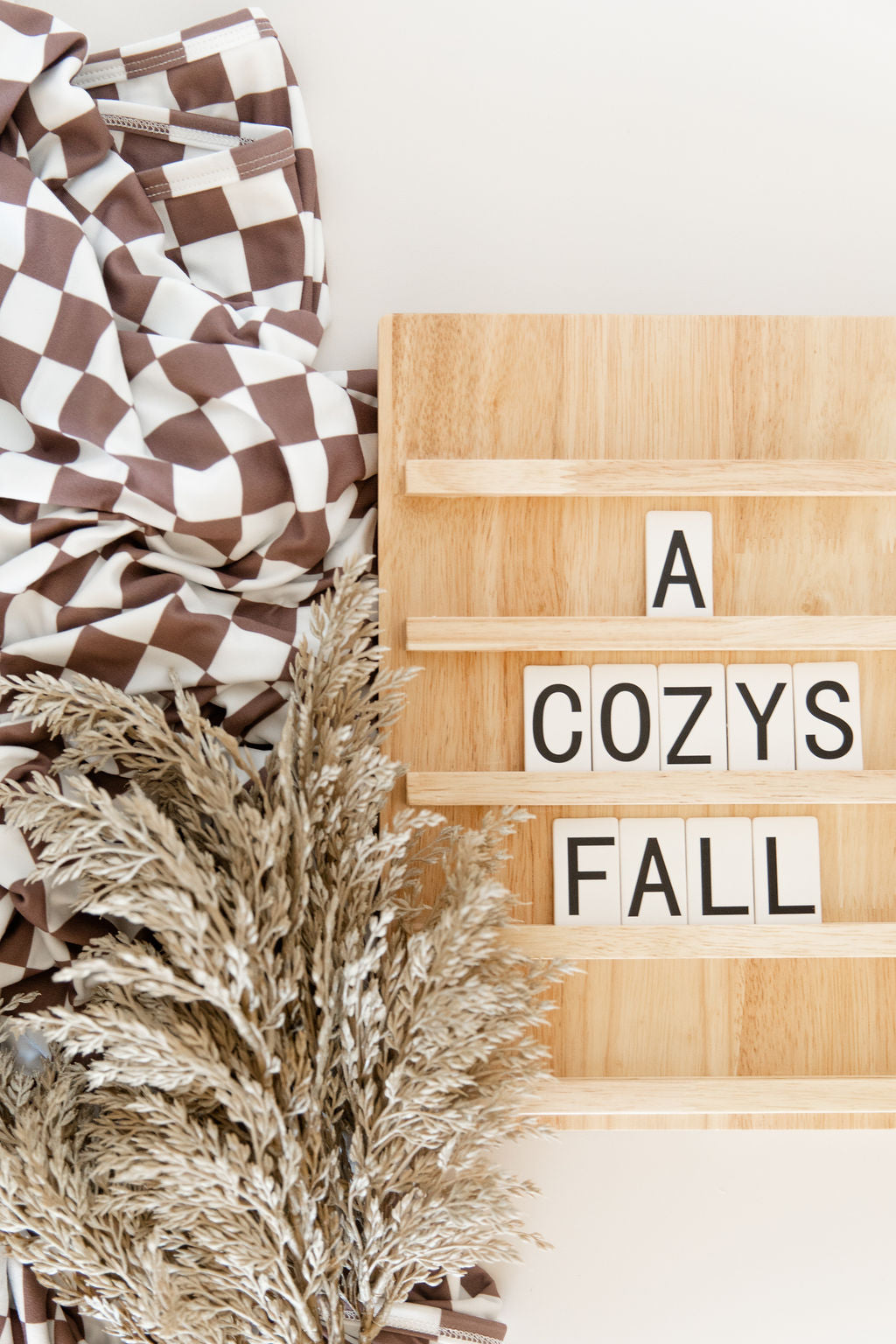 Light Brown + White Checker print blanket + with a Light Brown + White Checker reverse.
