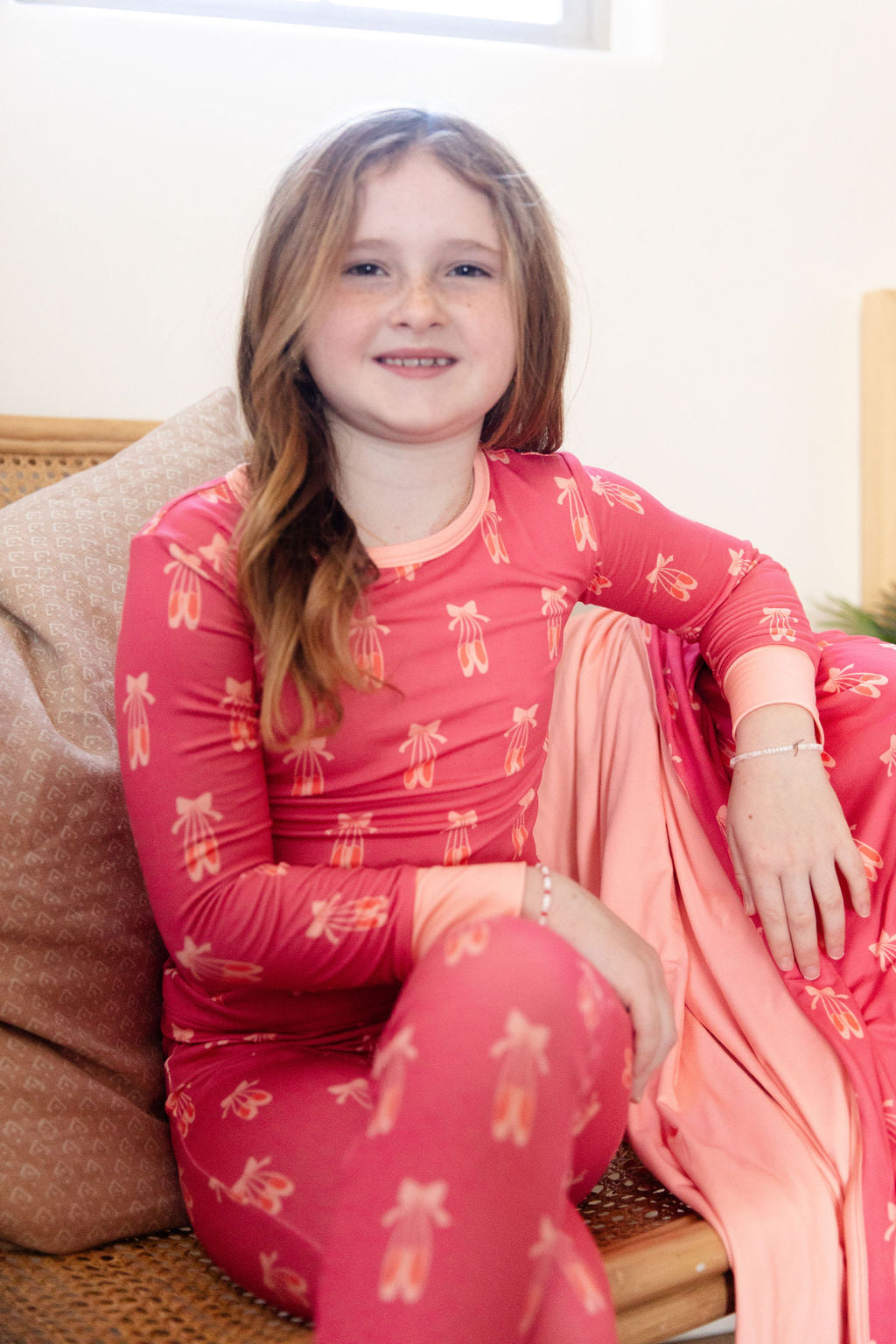 Pink background and Ballet Shoes print with a Light Pink solid reverse.