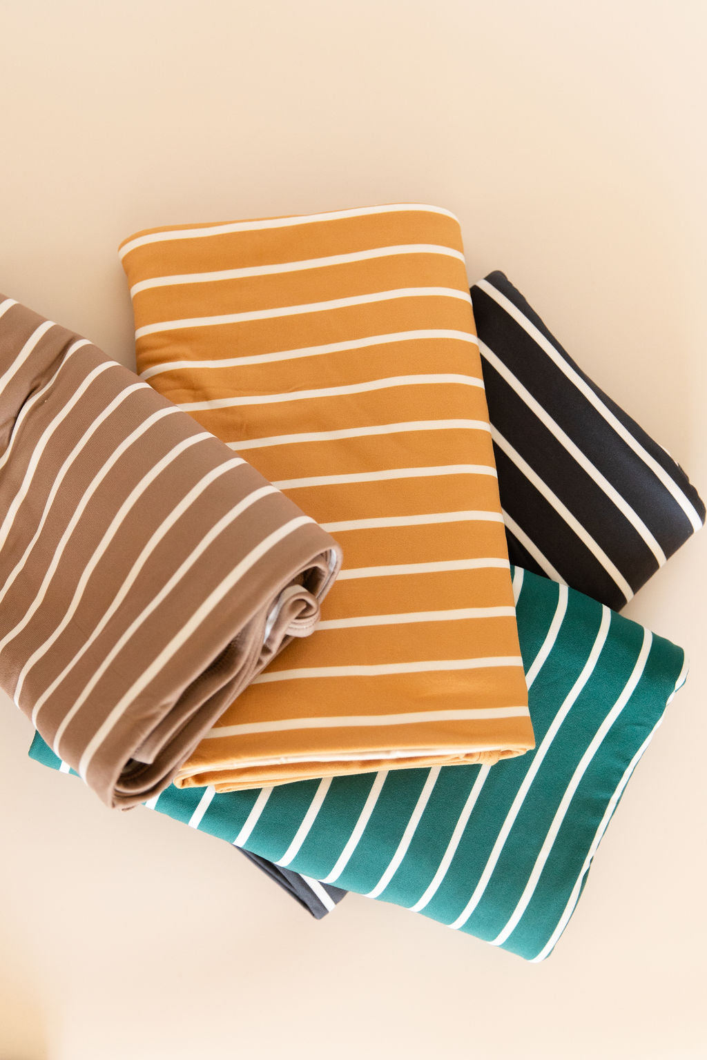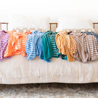 Light Mocha + White Stripe blanket + with a Light Mocha solid reverse.