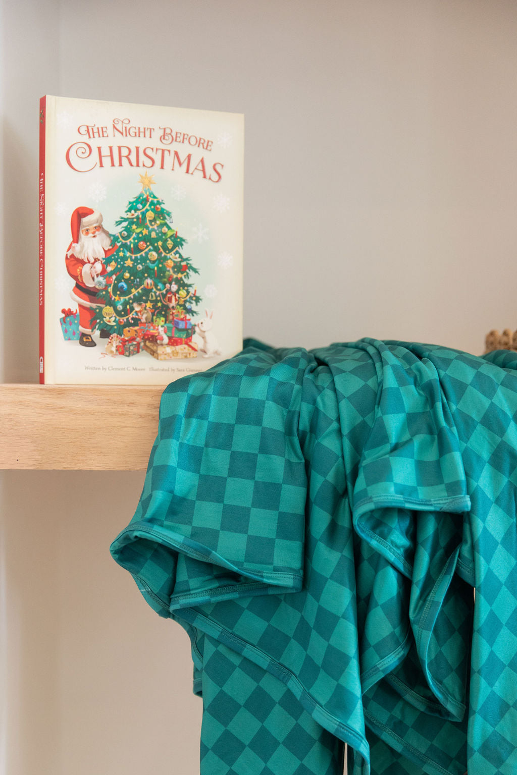 Evergreen checker print blanket with a Evergreen checker reverse.