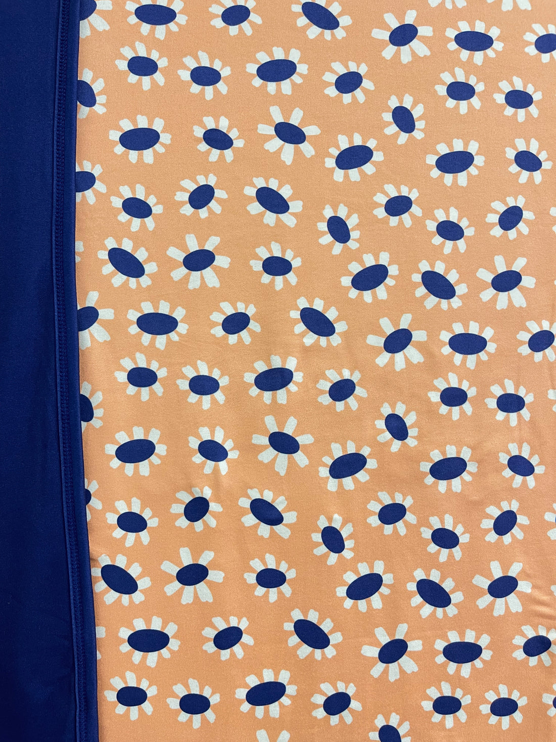 Light orange + indigo blue floral print paired with an indigo blue solid back.