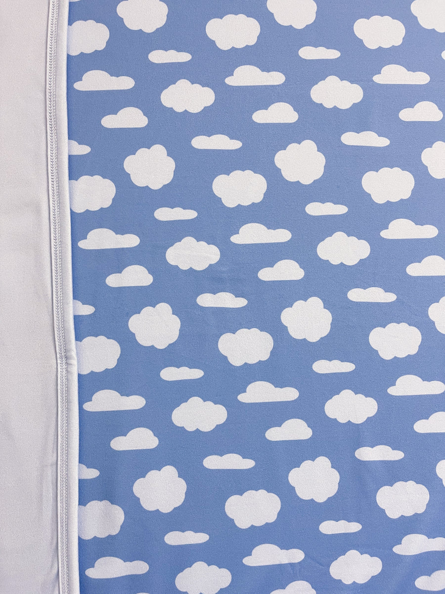 Light periwinkle blue cloud print paired with a light blue solid back.