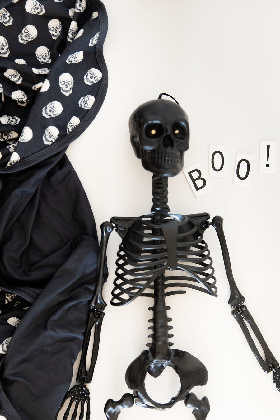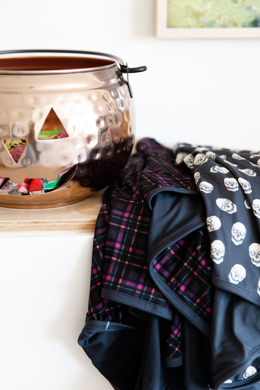 Dark Charcoal/Black + Off White Skull print with a Dark Charcoal/Black solid reverse.