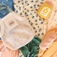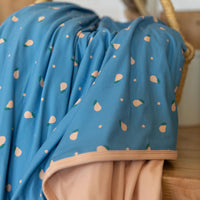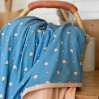 Blue background with Pears print with a Muted Light Peach solid reverse.