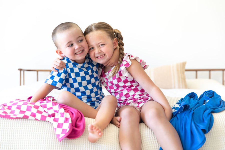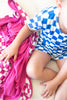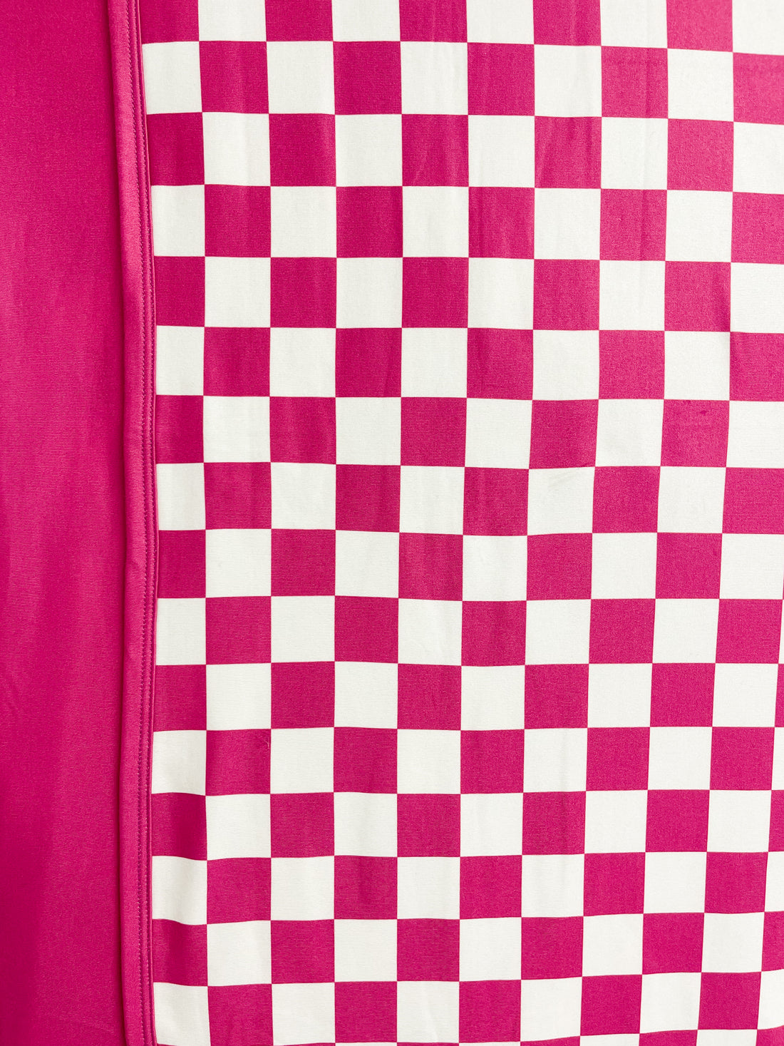 Hot pink + white checker print paired with a hot pink solid reverse.