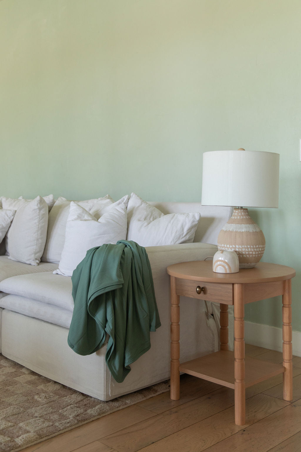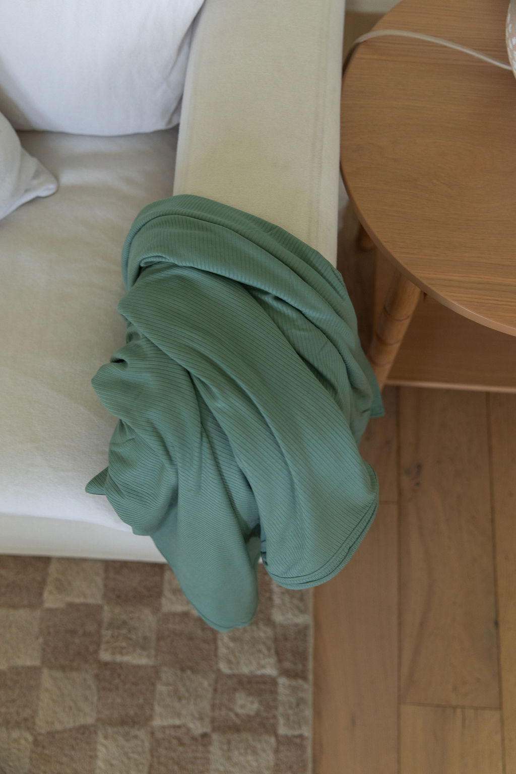 Sage Green Ribbed blanket with a Sage Green Ribbed reverse.