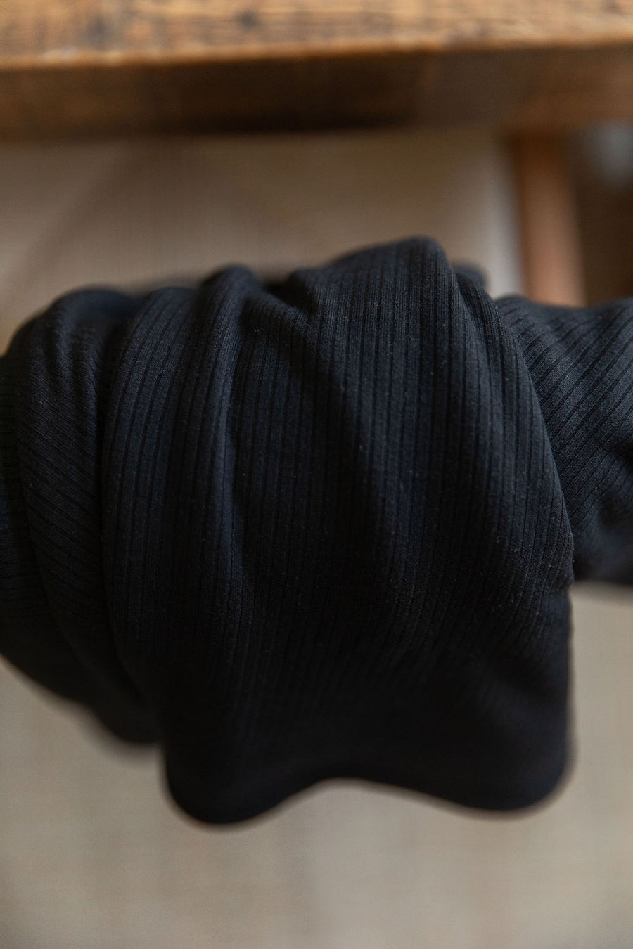 Black Ribbed solid blanket with a Black Ribbed solid reverse.