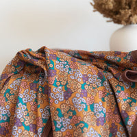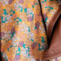 Mustard Yellow + Fall Mini Floral print blanket with aFall Brown Solid reverse.