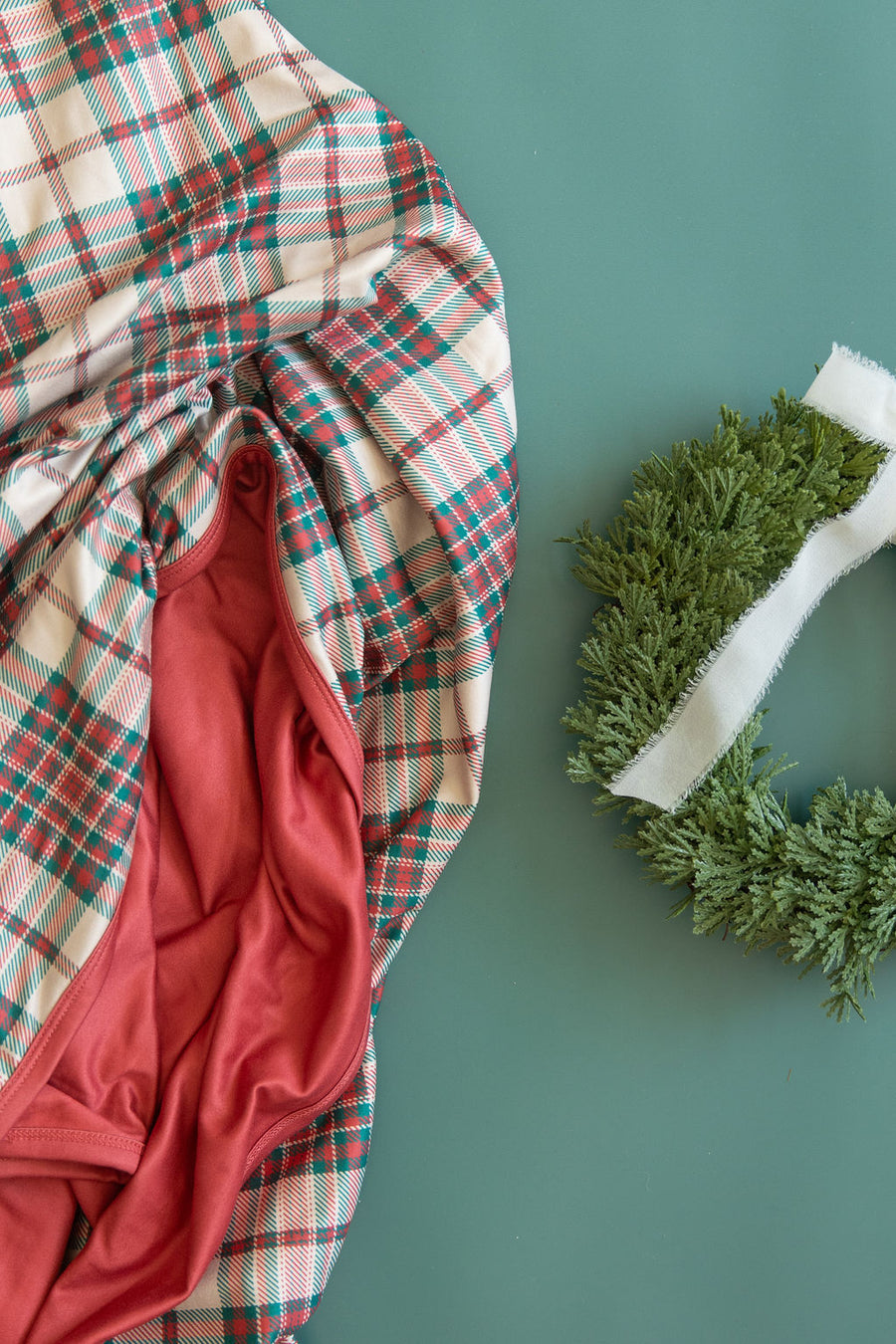 Christmas Red + Green Plaid blanket with a Dark Christmas Red solid reverse.