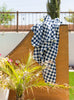 Denim blue + white checker print paired with a denim blue + white checker reverse.