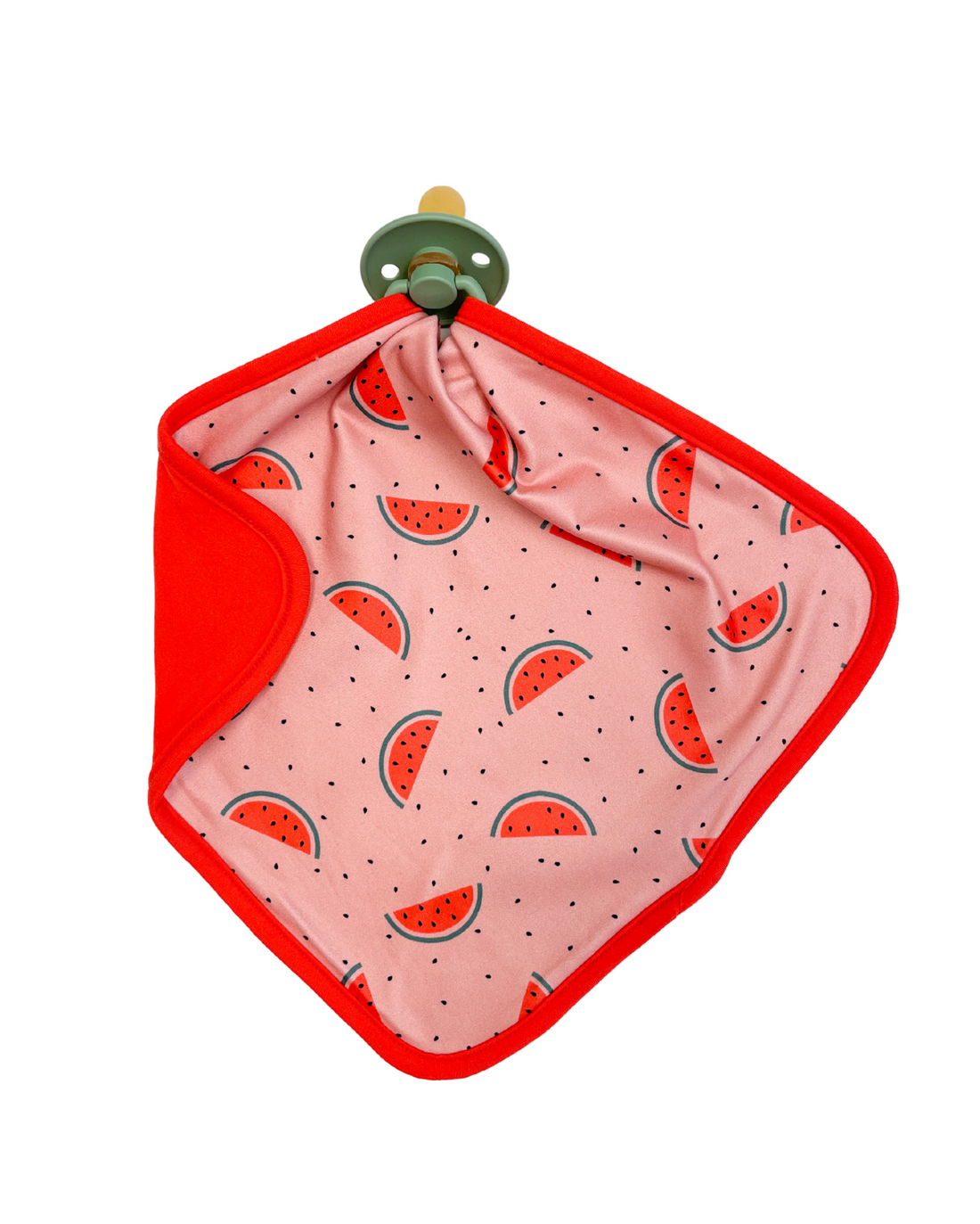 Our Cozys lovies are double sided and can be attached to any pacifier, toy or teether.
